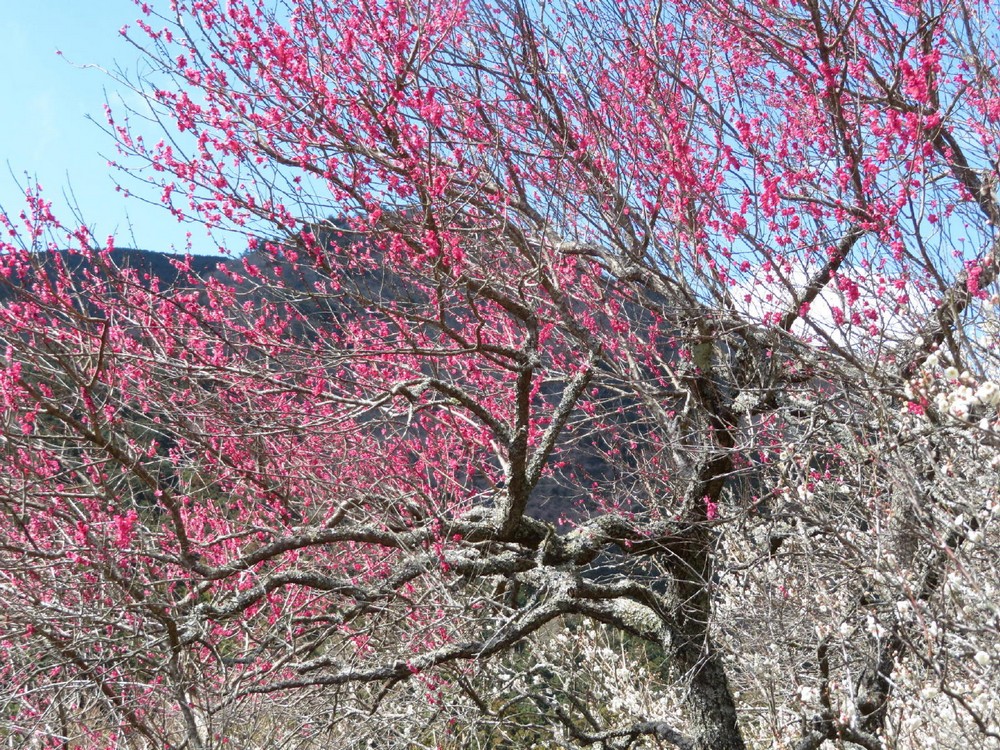 4,000本の紅白の梅を誇る湯河原梅林が1996年に完成したとのこと。