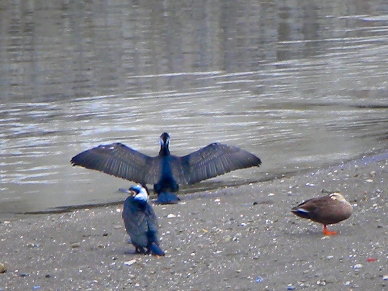 下山川の水も奇麗で流石と思った。川岸で海鵜が羽を拡げて乾かしていた。