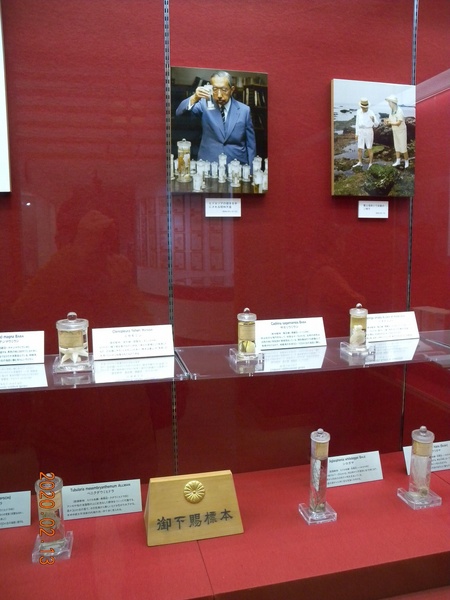 昭和天皇が自ら採集した相模湾の生物の標本、研究論文がまとめられた書物等興味を引いた。