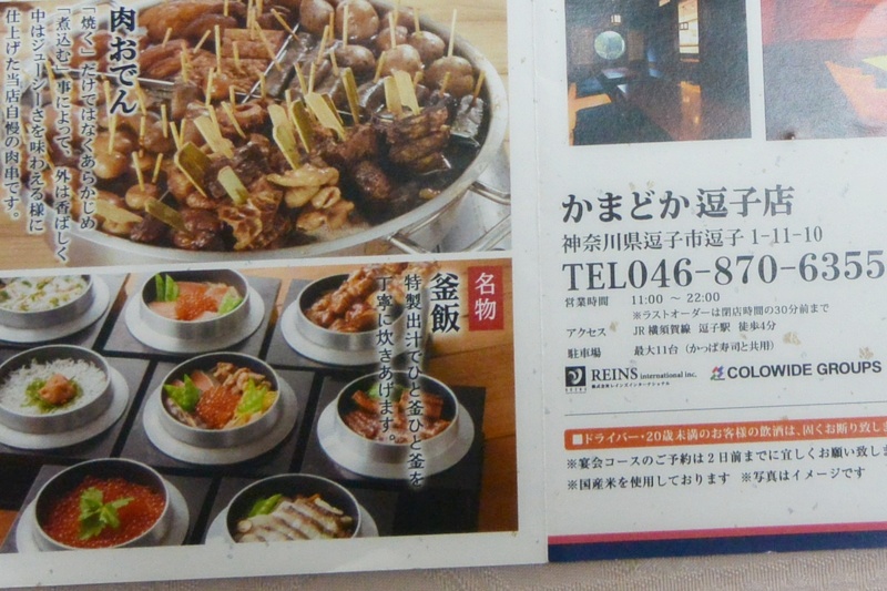 ガイドが駅近くの「釜めし専門」:「かまどか逗子店」へ連れて行って呉れた。