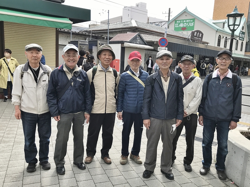 鎌倉駅西口時計台下に約束の10時 AM に7人集合、参加者は進藤、小野山、阿川、