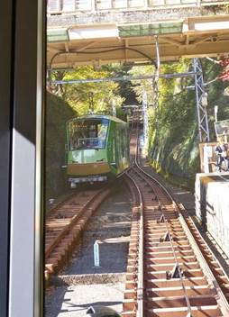 ケーブルカーは一般の空中ケーブルではなく、地面に張り付いて登るので両側は木で見通しが悪く、またトンネルが多い為景色は良くありませんが、それでも上るにつれ海が、江の島が、三浦半島が、見えてなかなか見ごたえが有りました。