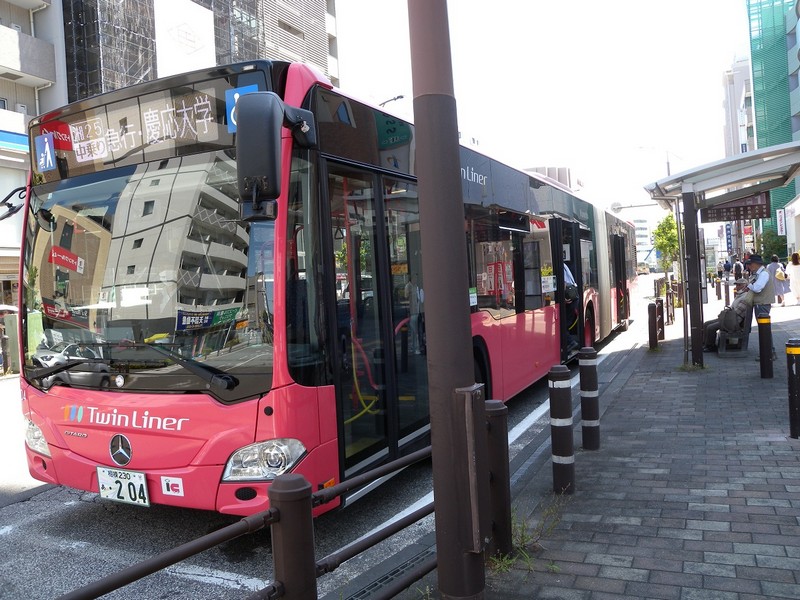 10:00発の神奈中バス:2両連結の「慶応大学行;急行」が来た。このバスには何と「べンツ」のマークが付いている!「グットタイミング!?」と6人は飛び乗った。