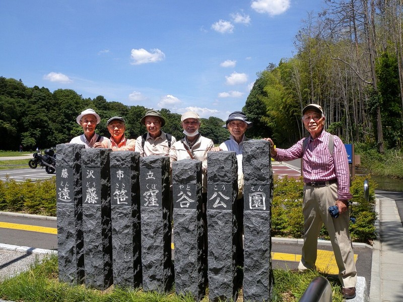早速「公園の名の入った石柱」を前にして集合写真を撮った。
