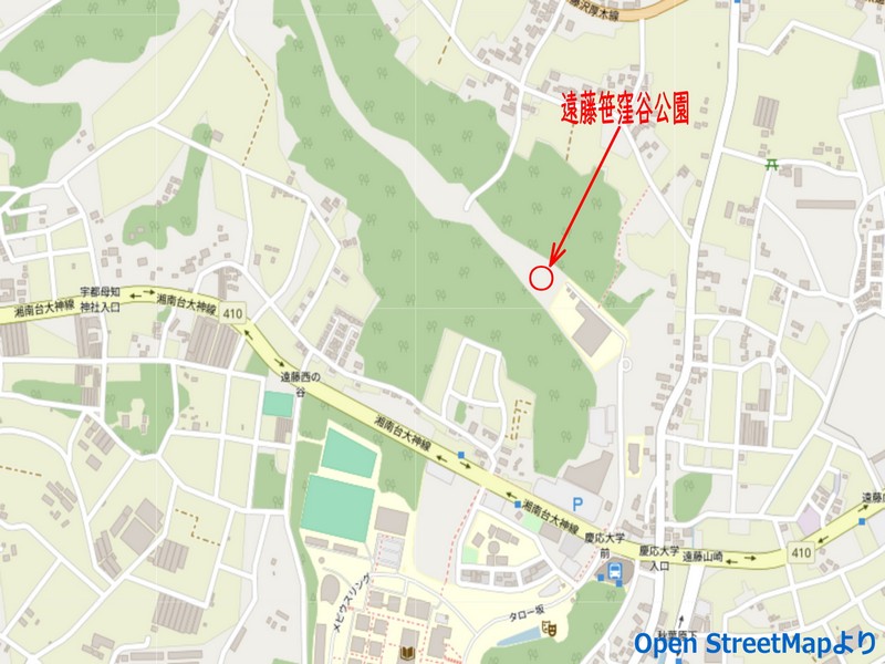 慶応大学看護医療学部の校舎の横を左折すると公園入口が見えて来た。