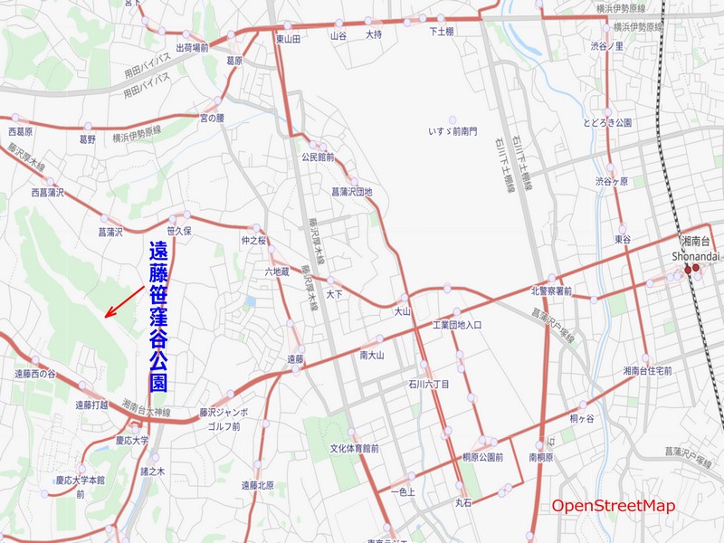 アクセスは「小田急江ノ島線:湘南台駅」からと「東海道線:辻堂駅」からそれぞれバス利用の二つのルートがある。