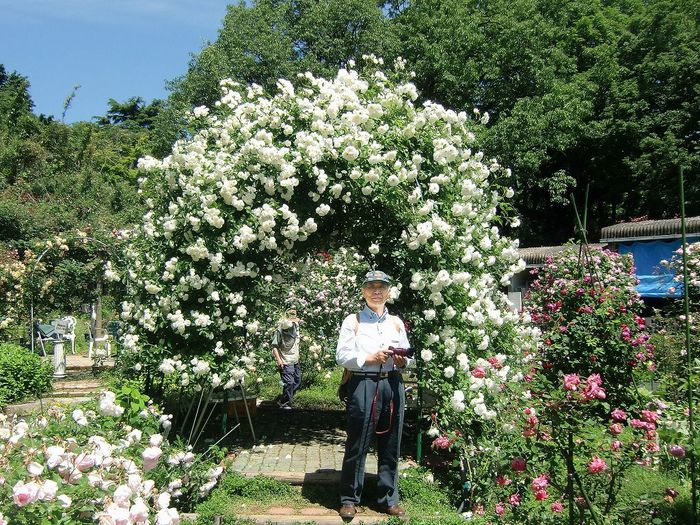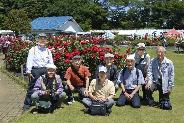 各自三々五々に写真を撮りながら園内を散策したが、途中全員の集合写真を撮ろうとしたら浪本さんが見当たらない。途中ではぐれたらしい。苑内を3班に分かれ捜索隊(?)を結成したが間もなく見つかり、ほぼ予定通り11時にばら苑を出発。