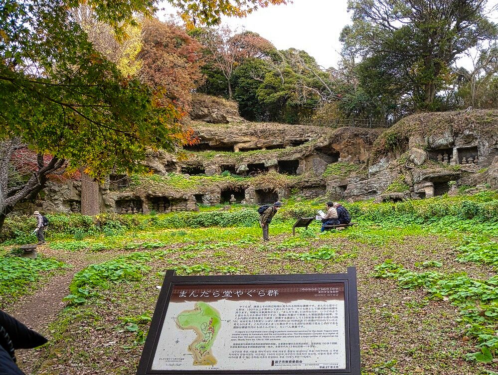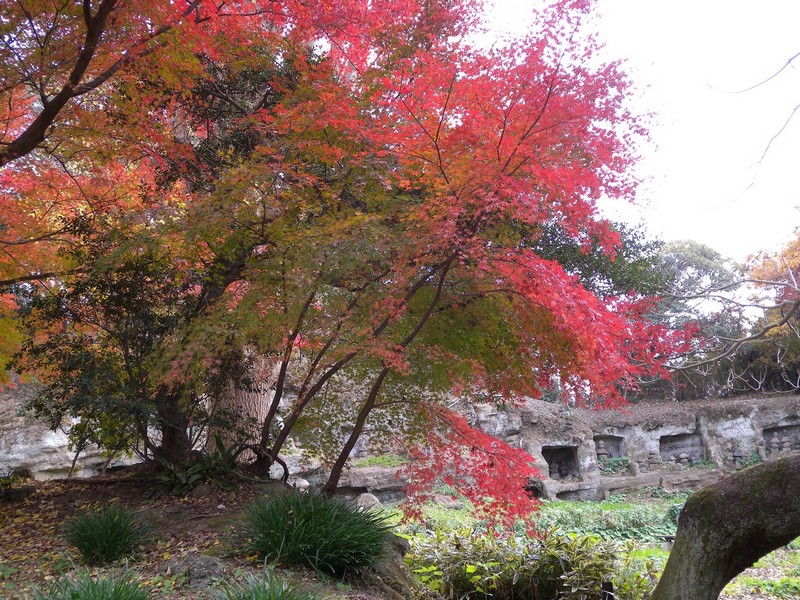 堂内には可愛い水仙数輪が咲き、真っ赤な紅葉が「やぐら群」を一層幻想的に、浮かび上がらせていた。誠に圧巻な景色でした。