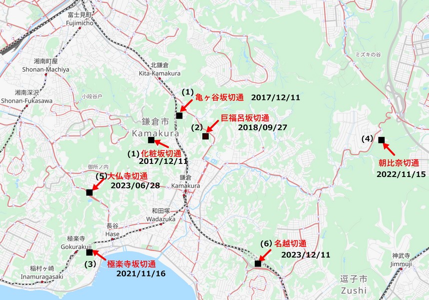 最初の「亀ケ谷坂切通」と最後の「名越切通」踏破の日付が奇しくも12月11日と同じ日になった。