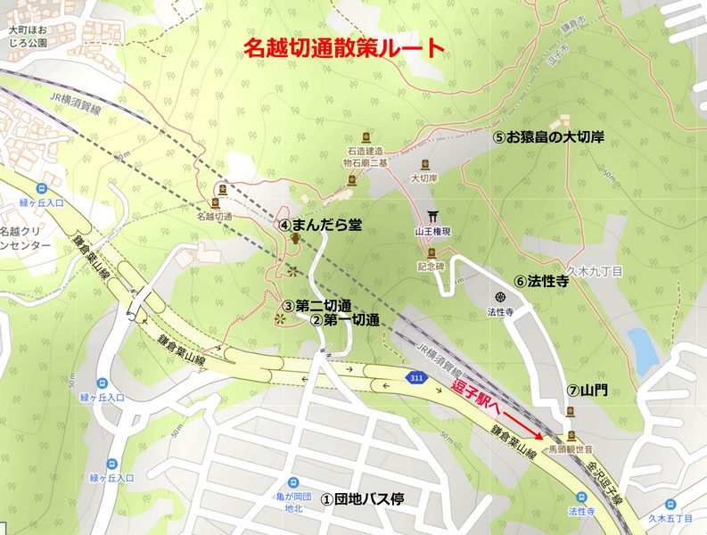 名越切通を散策したルート