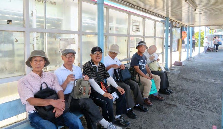 油壷行きバスを待つ面々