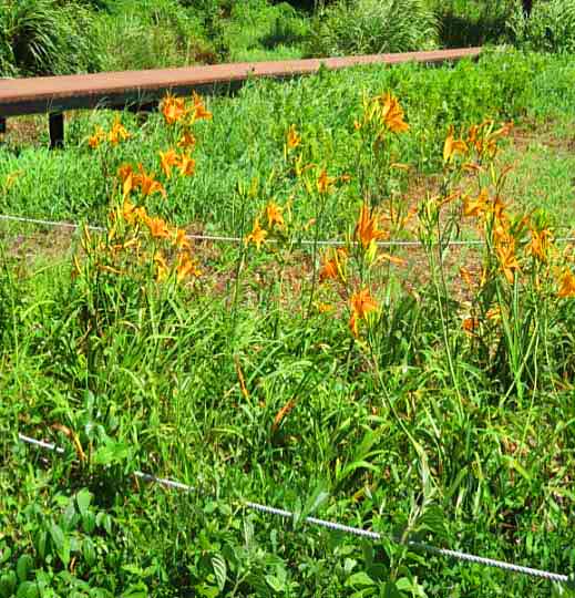 えのきテラスから千潟方面を望む カンゾウの群生