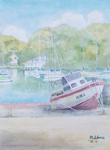 描いたヨット(瑞體2号)が陸揚げされているのに運よく遭遇した。その時の絵は広瀬さんのブログに掲載されているので比較して見てください。