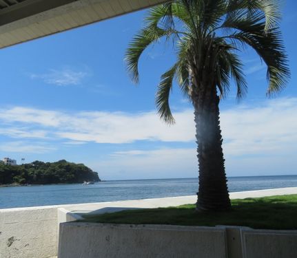 外は猛暑の昼下がり、レストランの中は涼しく、景色は海がきれいで、しばし至福の時を過ごす。