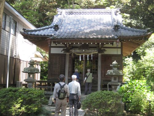 祖師堂を一回りしてから礼拝し、中を見るが、格子にガラスが嵌められており、反射して良く見えない。ここで皆さん暫し座って一休み。