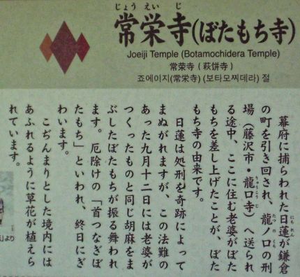 老婆が日蓮へ「ぼたもち」を差し上げる絵もあった。鎌倉は何処でも日蓮のようだ。