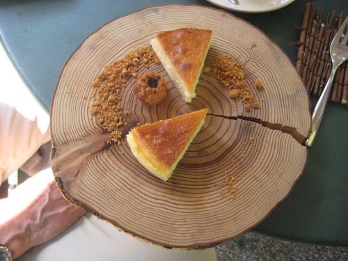 ここはなかなか良いところ。大樹に囲まれた裏庭のパラソルの下でコーヒーとチーズケーキを堪能した。
