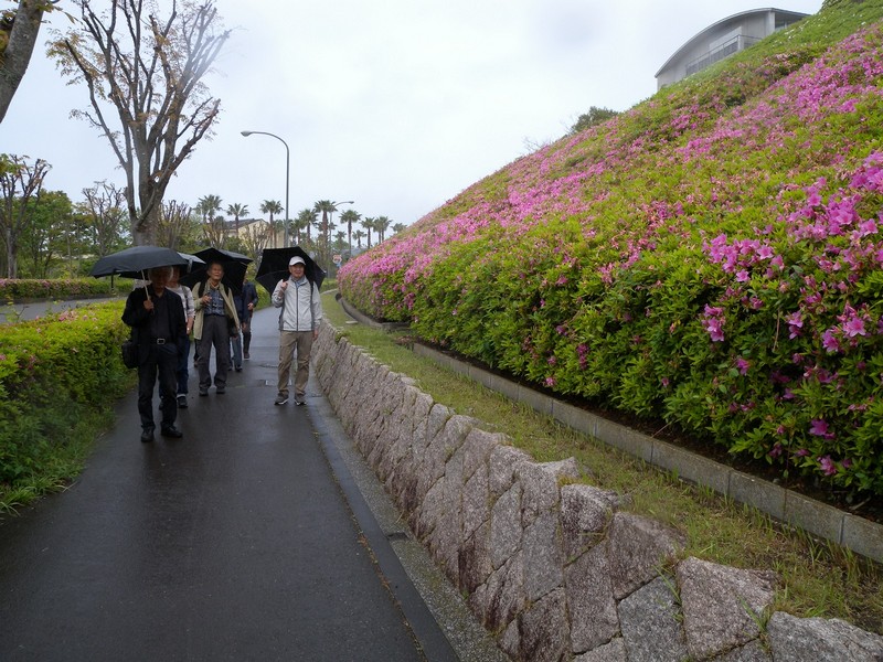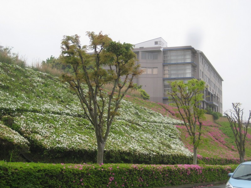 大きな建物の広い法面或いは傾斜地は一面ツツジ。咲き終わった処もあるが、まだ咲いている処もあり美しい景観である。