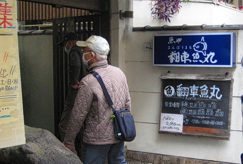 ここは山八会、歩くことに異議なし。しかし、なかなか遠い、へとへとになりながら30分ほど歩いて漸く活魚料理の翻車魚丸(まんぼうまる)に到着。