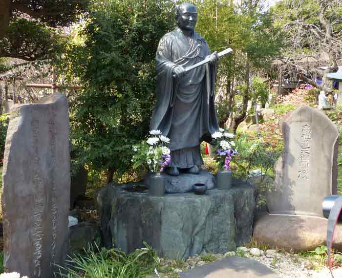 本堂前に道元像と