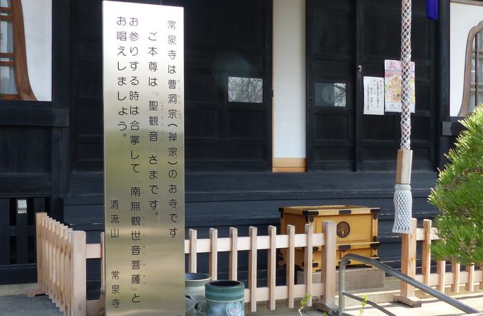 本堂は障子が締まっていて本尊が見えません。但し、本尊が聖観音であること、また、参るときは合掌して「南無観世音菩薩」と唱えることを指導する看板があります。