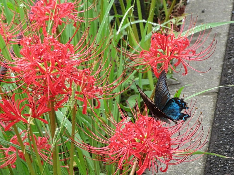 森を抜けると、湿田に沿った外周路に出た。道沿いには沢山のヒガンバナが植えられ、初秋の風情が感じられた。