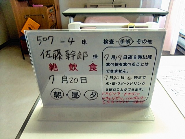 手術日の3日前の7月17日に入院、手術までの3日間はNMR(核磁気共鳴)、造影剤を使ったCT、