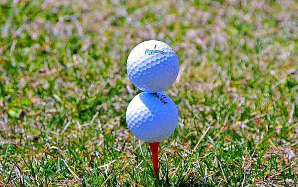 ティーアップしたボールの上に、上手にディンプルを合わせるともう一つのボールを置くことが