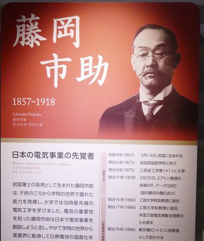田中は別名「からくり儀右衛門」と称された今で言うメカの天才、藤岡は日本の電気工学の先駆者でマツダランプの産みの親である。