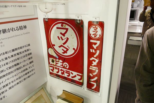 このコーナーの一角に懐かしいマツダランプの看板を発見。