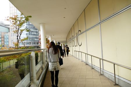 左に曲がり矢印の通りに進むと、そこはラゾーナの外側に作られた回廊になっていて、さらに進むとまた東芝未来科学館の看板が見えてきた。さらに進んでエスカレータを降りるとそこが入口である。
