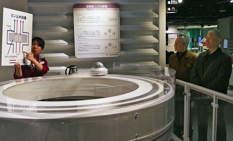 次にサイエンスゾーンへ移動。超伝導を利用したリニアーモーターカーの仕組みを見る。