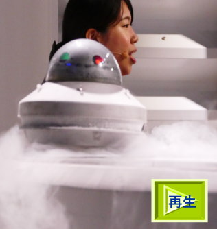 液体窒素を使って、円形軌道の上を1cmほど浮上しながらグルグル回るUFOみたいな模型にしばし見とれる。