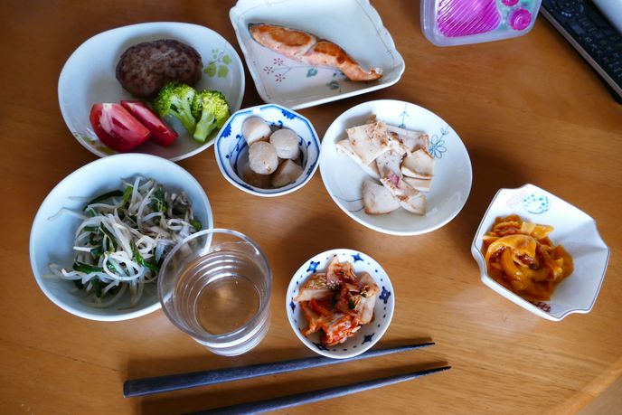 テーブルに並んだ料理を見てびっくり。いつもの私の朝食の定番「一汁一菜+納豆」とは大違い。