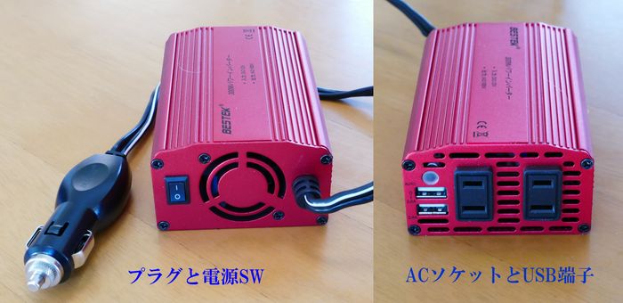愛用の車載用のインバーターで充電を始める。シガーライターの端子に差せば150W程度の家電が使え、携帯電話やスマホの