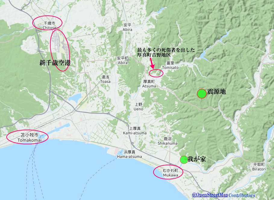 車のラジオをTVに切り替えると、震源地は内陸で我が家にきわめて近いところだった。震度は6強ということだった。後で調べてわかったことだが、津波を避けて逃げようと考えていた場所は今回の地震で山崩れが起き、多数の死者を出した厚真町の方角だったのは皮肉なことだ。