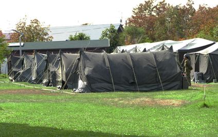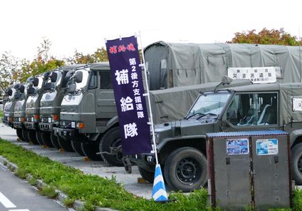 車列とテントの数からかなりの大部隊と思われる。給水、炊き出し、入浴補助を行っていた。