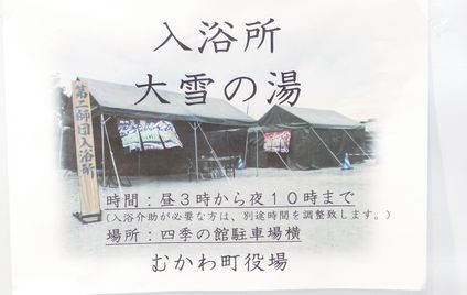 避難所の受付付近をウロチョロしていたら、「もう入浴出来ますよ」と声をかけられた。