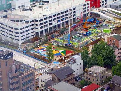 手前中央の低いビルは居住者用駐車ビル