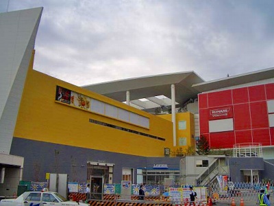 敷地内は突貫工事中で立ち入り禁止ですので周囲から撮った開業間近の工事状況を報告します。