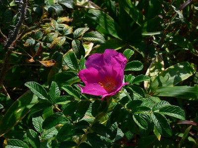 海岸の方へ出て探してみる。エゾキスゲは5、6月頃に咲く花だからさすがに見られなかったが、ハマナスはまだ咲いていた。