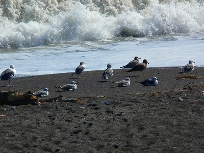 波打ち際で憩うカモメの姿をカメラに収めて次の目的地である生花苗沼に向かう。