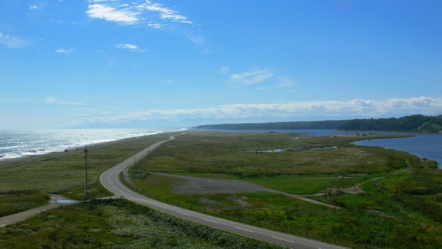 上の太平洋と下の生花苗沼を隔てるのはわずか10mほどの砂堤