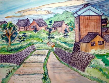 親父のスケッチブックより「倉と段々畑」 同 「東芝大分工場」