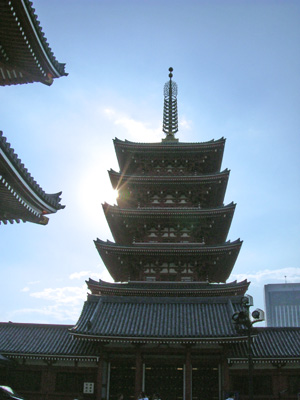 仲見世、雷門、五重塔その他の景色はいつも通りであるが、外人の観光客の多さには驚く。