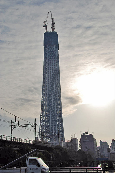 現在の高さは304mで今月末には、東京タワーの333mを抜くそうである。