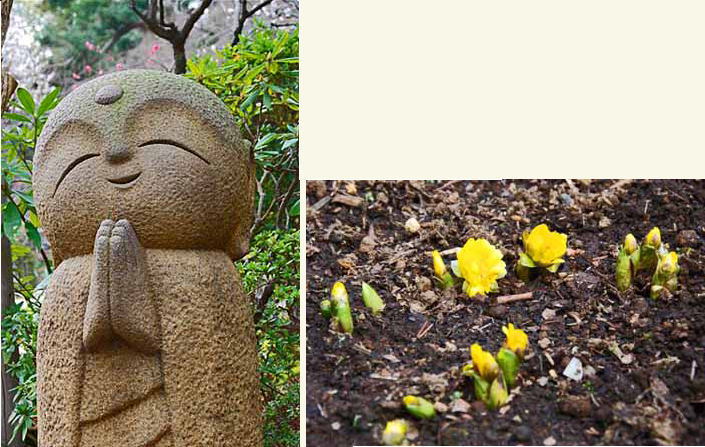長谷地蔵 福寿草 花言葉は「永久の幸福」「祝福を招く」