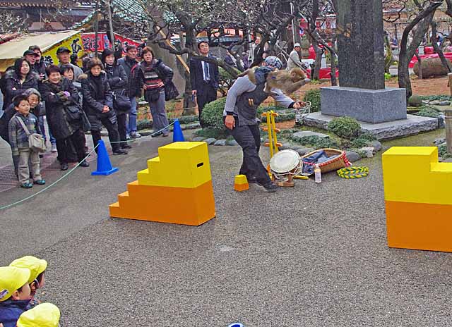 何十年ぶりかで見た猿回しを写真を撮るのも忘れがちに大いに楽しんだ。