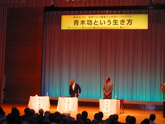 このイベントは日本人男子プロ初となる「世界ゴルフ殿堂入り」を果たした記念に、青木プロご本人がプロ生活40年の足跡とゴルファーとしての心得など“青木 功という生き方”と題して披露した。