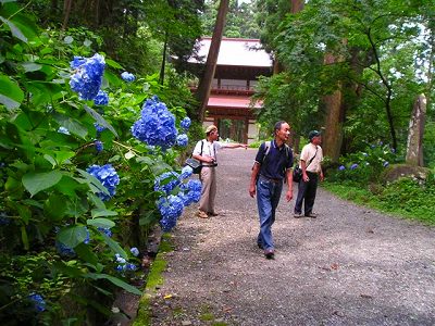 「三八会会員各位の健勝」を祈願した。参道の両側には満開の「紫陽花」が見事であった。昨年観た紅葉の木が今回は透き通るような新緑をつけていた。